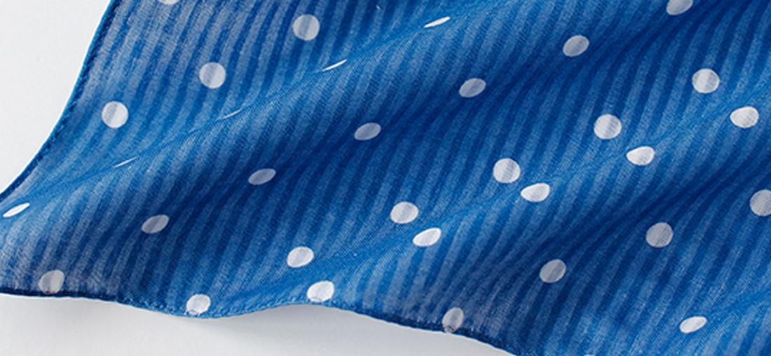 そのためパジャマや赤ちゃんのおくるみ、ベッドまわりなど肌に直接触れるアイテムによく使用されるほか、吸水性と速乾性にすぐれたその特徴から、ハンカチにも非常に適した素材です。