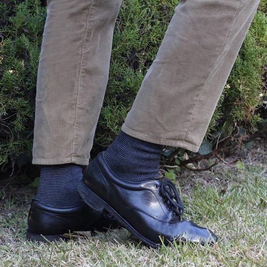 ローゲージで程よく厚みのあるふくらはぎ下丈のオリジナルクルーソックス。