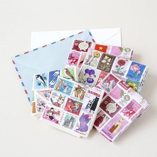 表面は世界の猫柄の切手でデザインされたハンカチ。