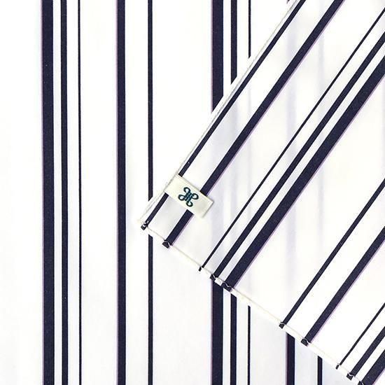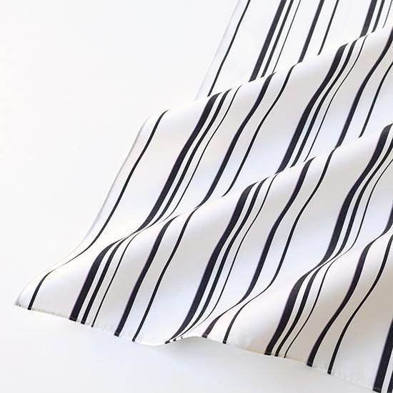細く入った紫のラインがアクセントのランダムストライプハンカチ。