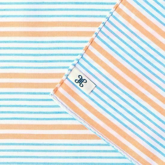 オレンジとブルーの組み合わせが爽やかなマルチボーダーのハンカチ。