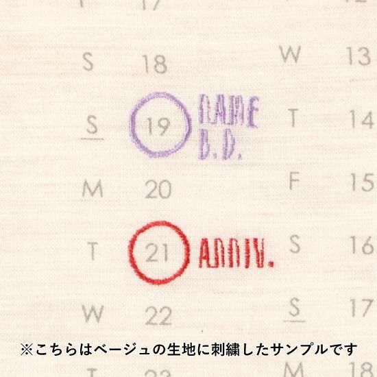 * 「(名前)B.D.」はお名前が長い場合、他の日付にも刺繍が重なる場合があります