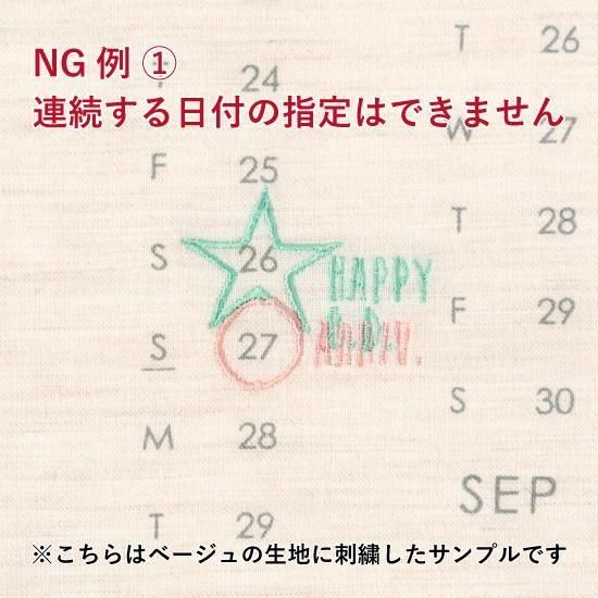 * 連続する日付のご指定は、刺繍同士が重なってしまうためできません