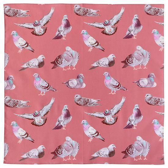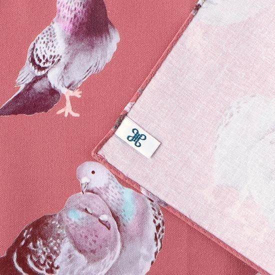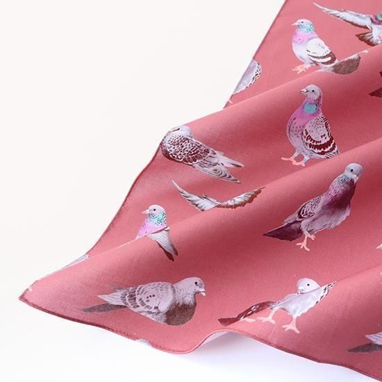 ハト好きにはたまらない、躍動感あるハトの柄のハンカチ。