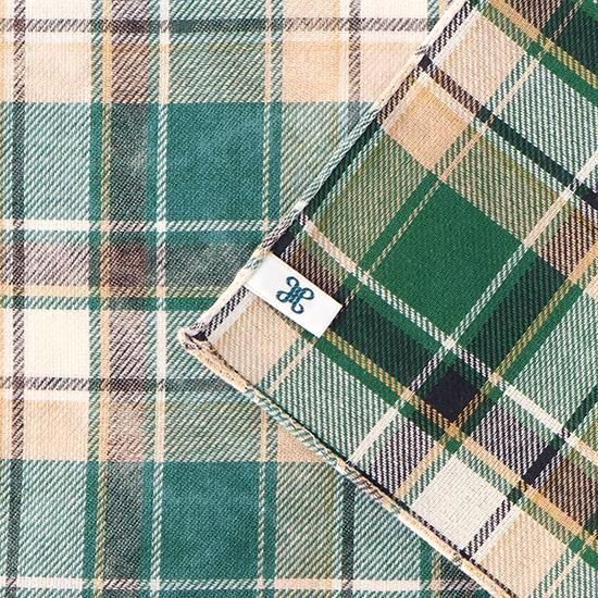 表面はダメージ加工したような風合いの、個性的なチェックのハンカチ。