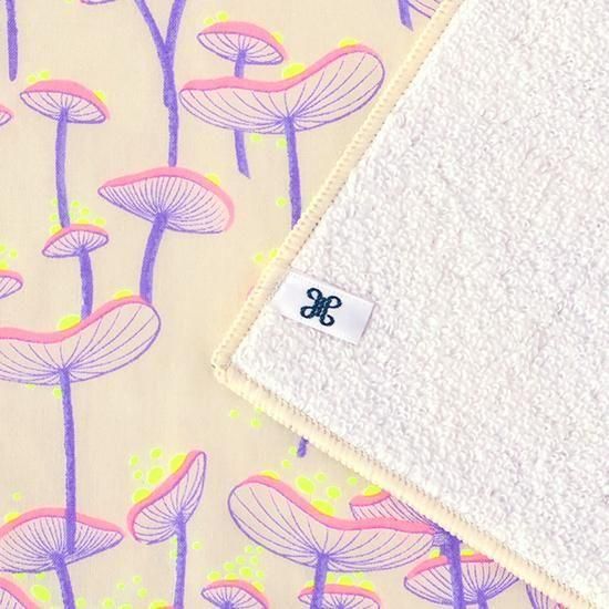 表面は個性的な生地を使い、裏面は吸水性抜群のパイル素材。