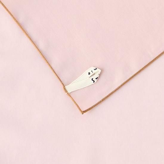 メロー巻された縁取りの糸と生地の色合わせが印象的なハンカチ。