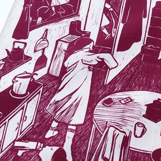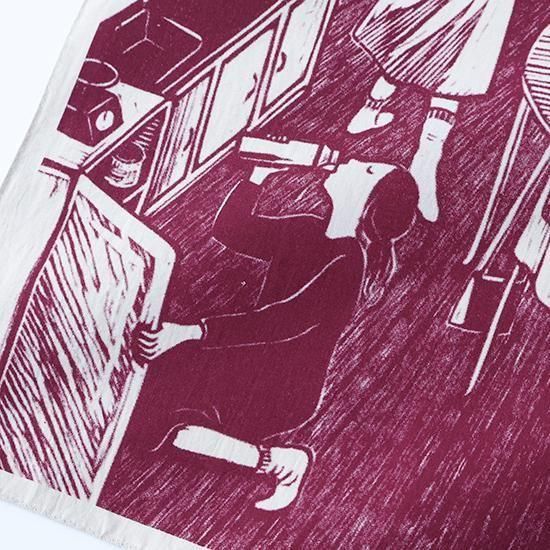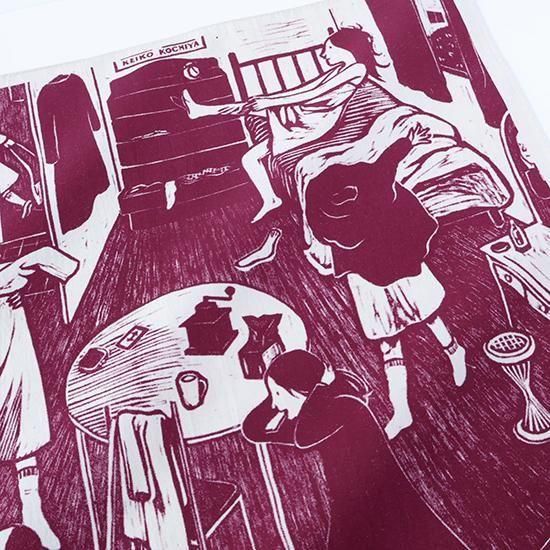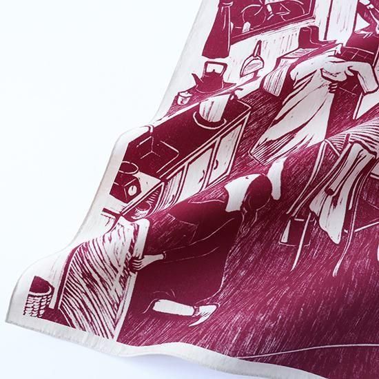 木版画をプリントした可愛いハンカチ。あわてんぼうのあの人にあげよう。