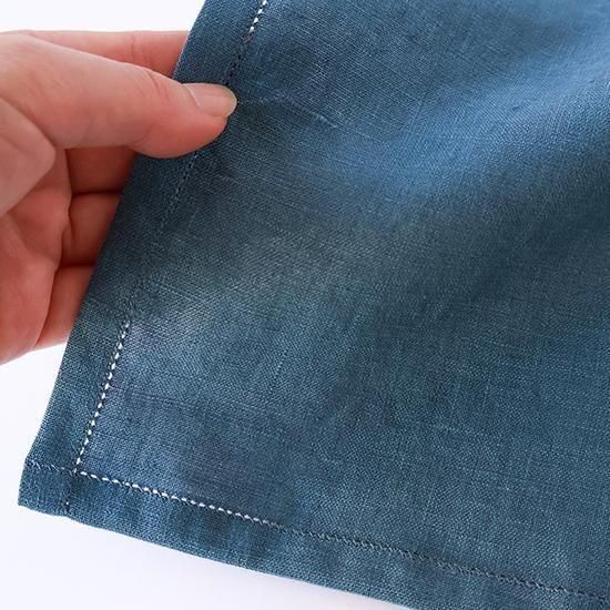 押し返して飾りの糸が見える特徴的な縫い方のジャパンリネンハンカチ。