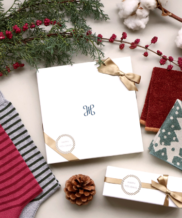 クリスマスを彩る、オールドファッションな小物たち。ギフトにぴったりな靴下やハンカチをご紹介します。