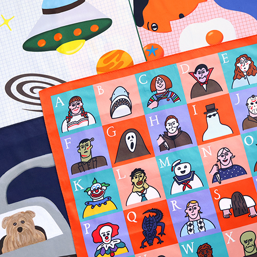 イラストレーター、Saki Morinagaさんが描く、映画をモチーフにしたハンカチができました。